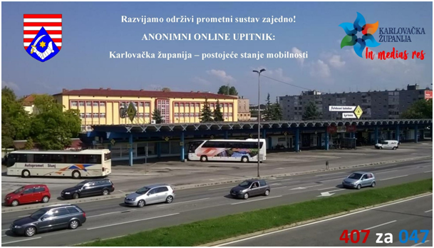 Molimo Vas da precizno i potpuno odgovorite na pitanja kroz 5 kratkih cjelina i pridonesete stvaranju zajedničke vizije održive mobilnosti. Podijelite link upitnika svojim ukućanima, prijateljima i kolegama s prebivalištem na području Karlovačke županije i pomozite nam poboljšati prometni sustav županije.
